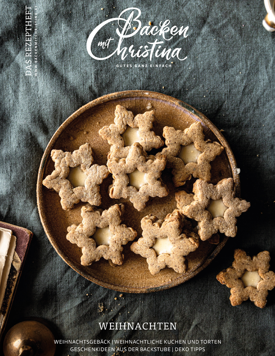 Wenn es draußen wieder kälter wird, die Schneeflocken um die Nasenspitze tänzeln und der Advent vor der Tür steht, dann heißt es: Ran an die Keksausstecher, her mit der Zimt-Zucker-Mischung und ab in die Weihnachtsbäckerei. Im neuen Rezeptheft versammelt Christina Bauer wieder jede Menge weihnachtlicher Backideen: von Eierlikör-Spritzgebäck über klassische Zimtsterne, cremigen Schokoladenmakronen bis hin zu zartem Zimt-Cheesecake. Und on top hat Christina wieder schöne Tipps für weihnachtliche Geschenke - zum Verschenken oder Behalten. Hereinspaziert in Christinas puderzuckerzarte Weihnachtsbäckerei!